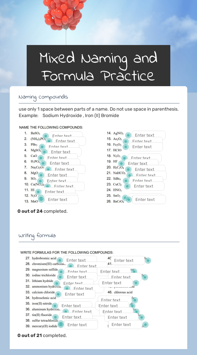 How to name and write formulas for a variety of inorganic compounds.worksheet used is here .